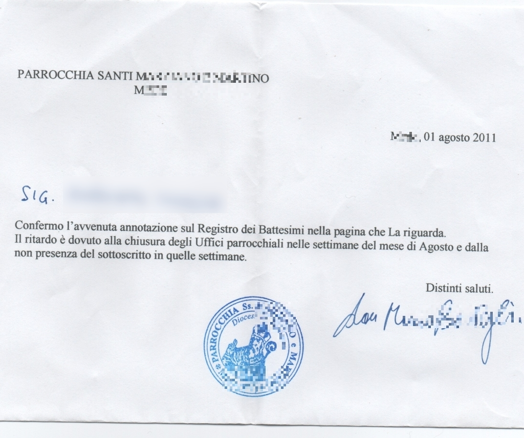 Non ricevendo risposte dal parroco, ho dovuto minacciarlo di rivolgermi alla Pubblica Autorità per fare valere i miei diritti, dopo pochi giorni ho ricevuto la risposta.