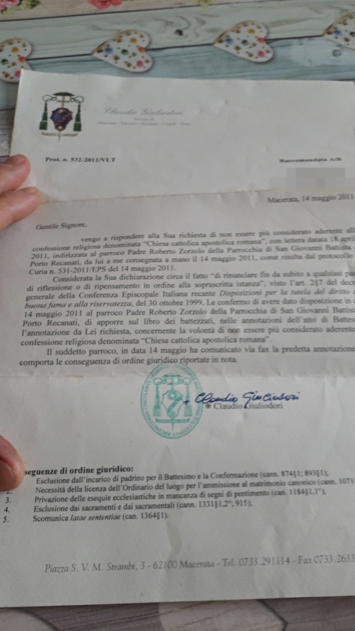 Felice di essermi sbattezzato