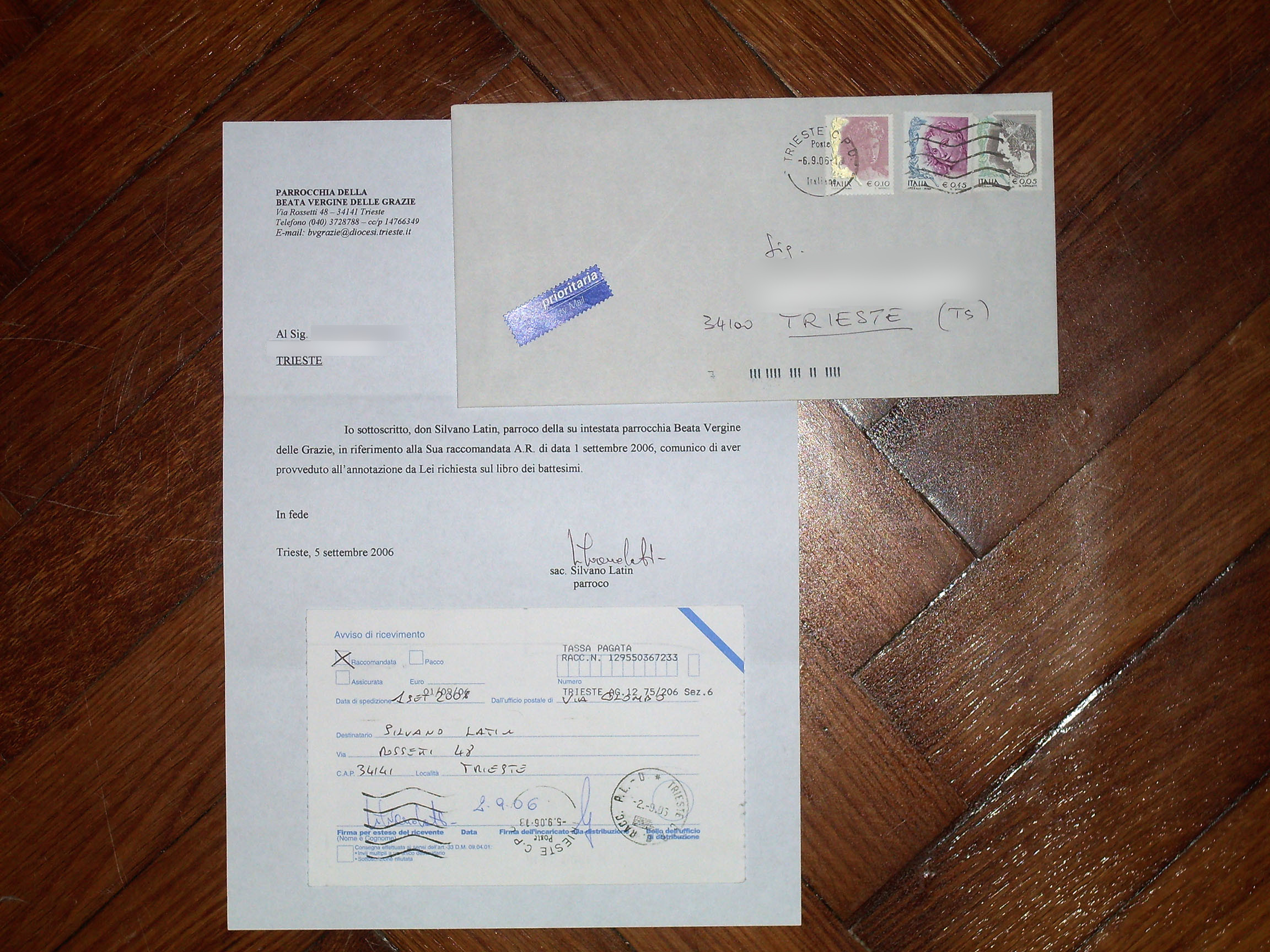 Mi è arrivata prima la lettera parrocchiale che il cartoncino della ricevuta di ritorno.
