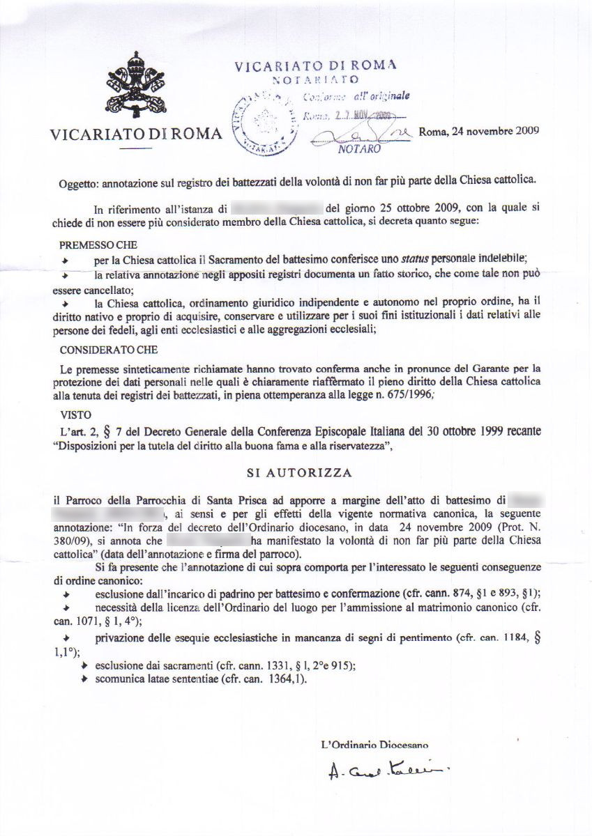 Contestualmente allo sbattezzo sono stato anche scomunicato.