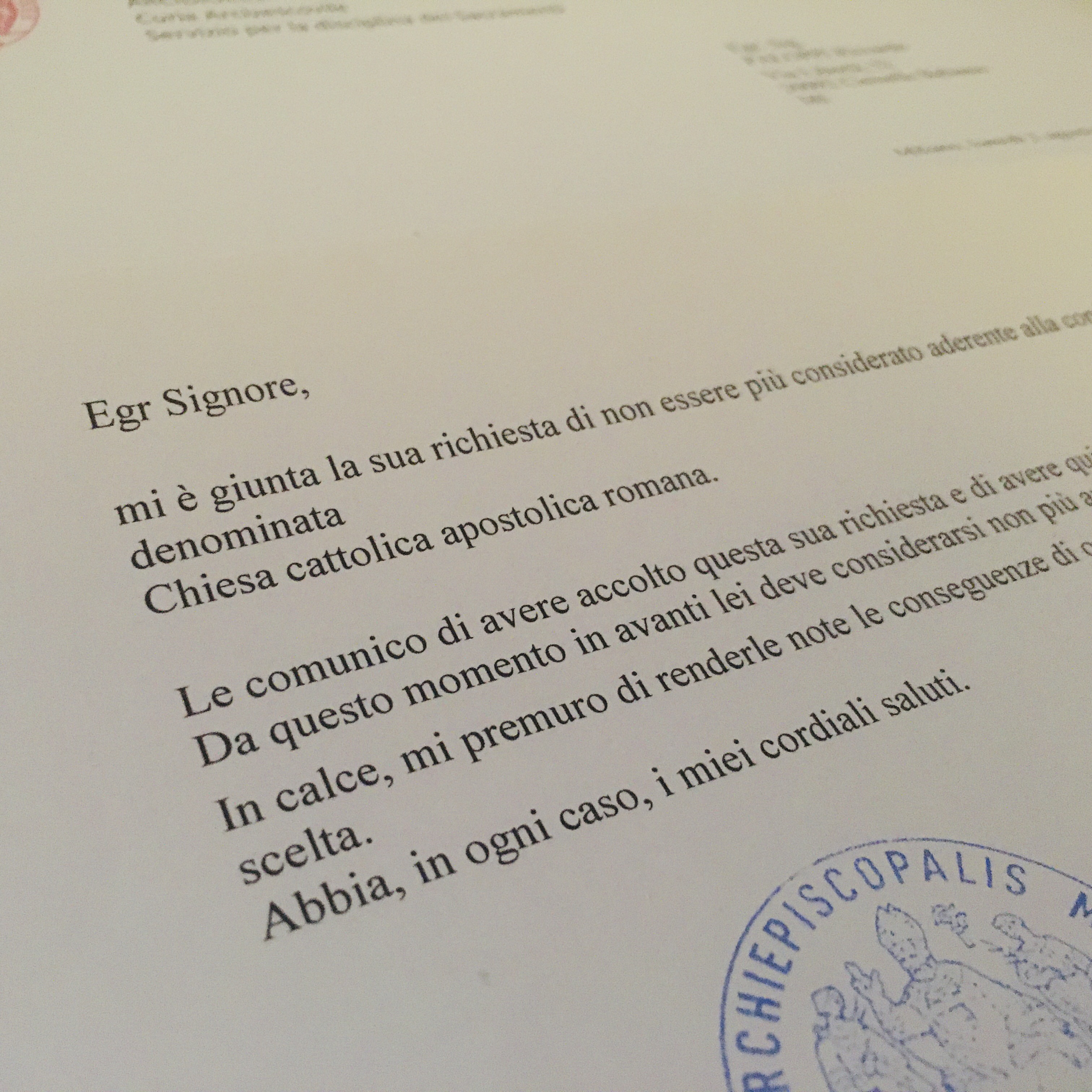 Una persona ha chiesto la rettifica dei dati relativi al proprio battesimo avvenuto a S. Giuseppe - CINISELLO BALSAMO (MI) il 02/08/2021, dichiarando di non voler più far parte della Chiesa Cattolica.