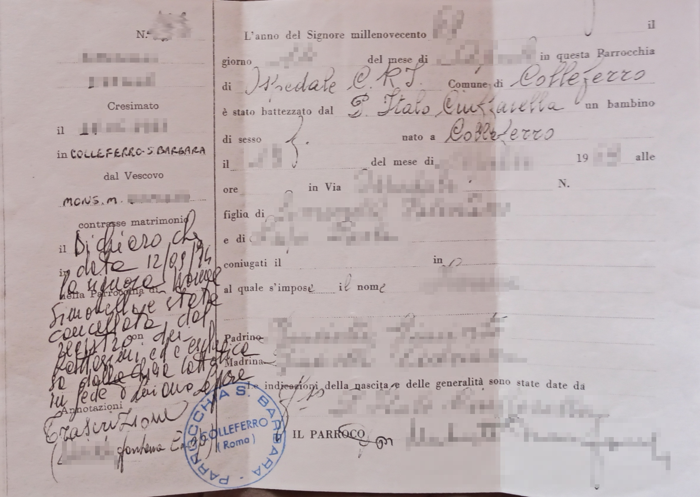 Una persona ha chiesto la rettifica dei dati relativi al proprio battesimo avvenuto a S. Barbara - COLLEFERRO (RM) il 12/09/2014, dichiarando di non voler più far parte della Chiesa Cattolica.