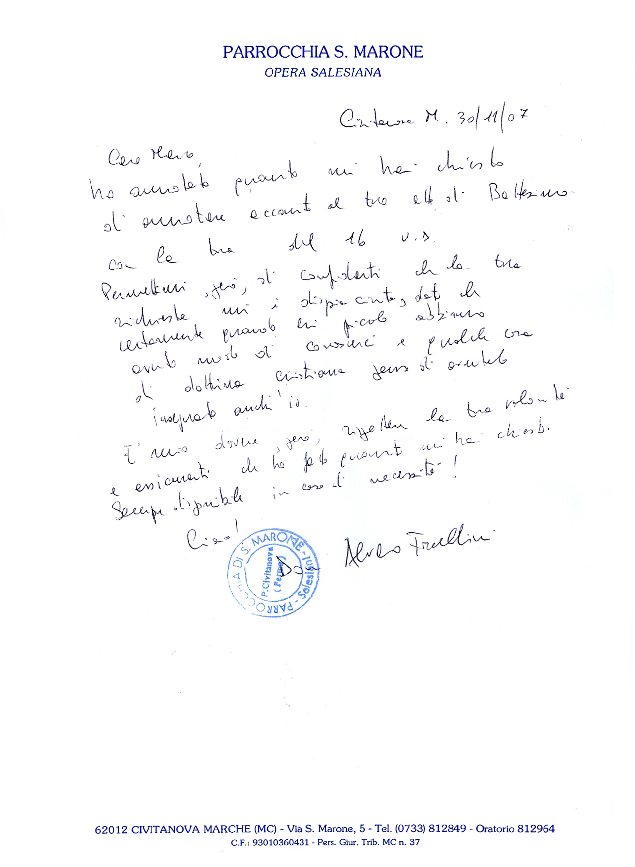 Una persona ha chiesto la rettifica dei dati relativi al proprio battesimo avvenuto a S. Marone - CIVITANOVA MARCHE (MC) il 30/11/2007, dichiarando di non voler più far parte della Chiesa Cattolica.