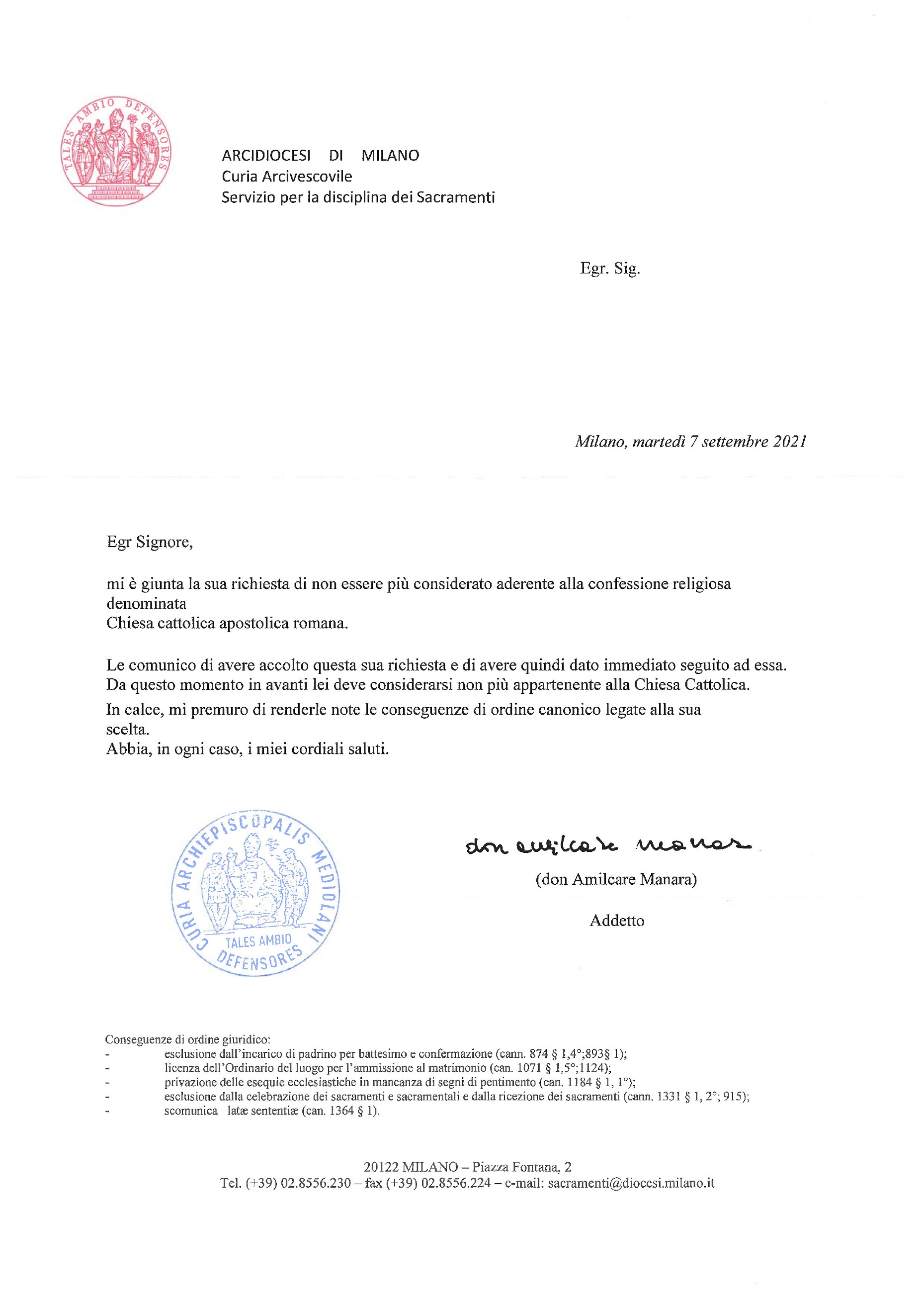 Ho scelto di sbattezzarmi per dare un segnale forte ai capi di questa comunità religiosa chiamata "Chiesa", così che inizino a capire di non avere l'intero mondo nelle loro mani.