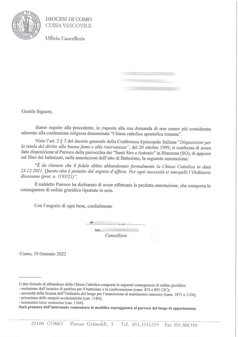 È stato davvero molto semplice potersi sbattezzare, avrei dovuto farlo molto prima.