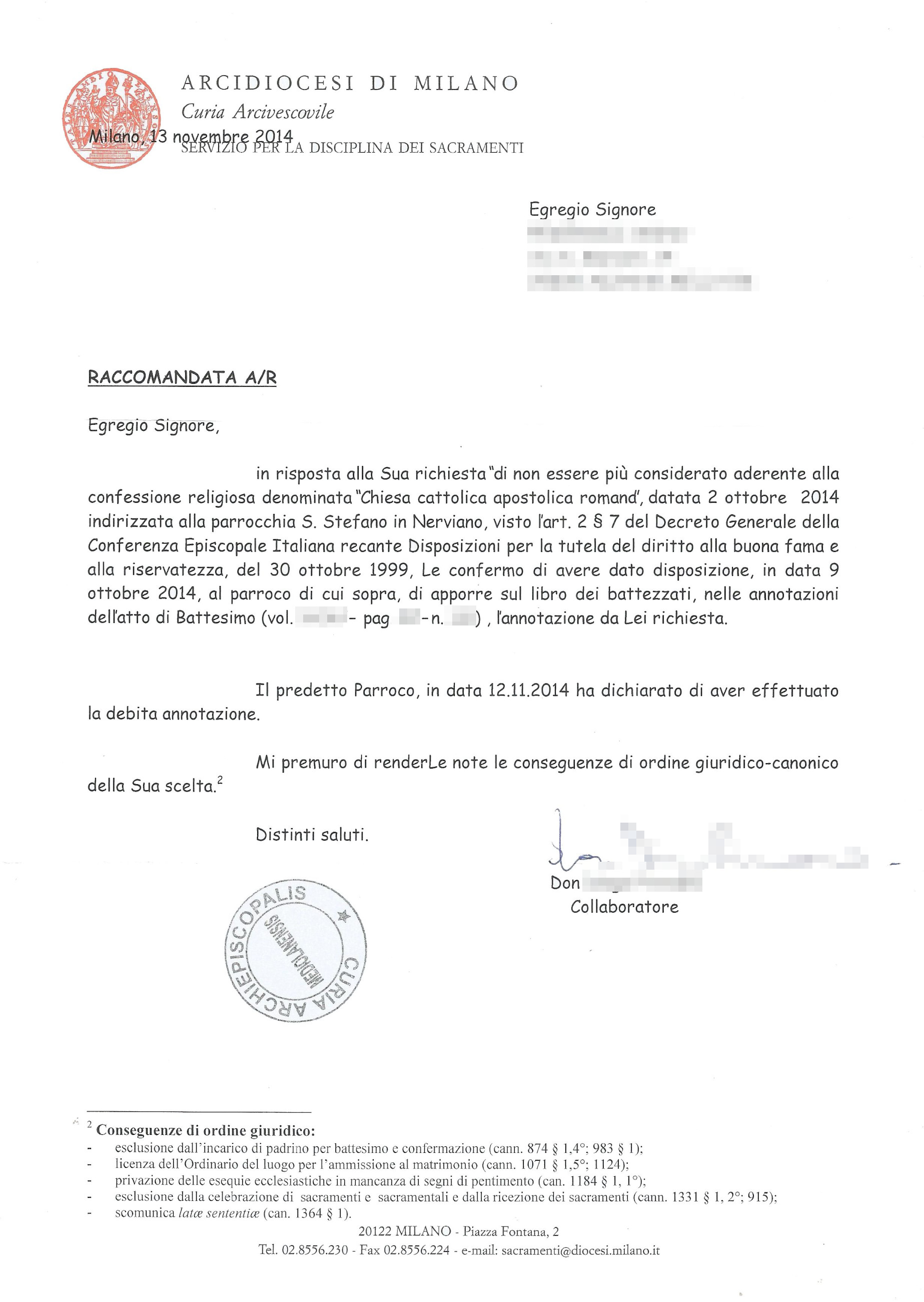 Ringrazio l'associazione lo sbattezzo per avermi suggerito l'iter da seguire.